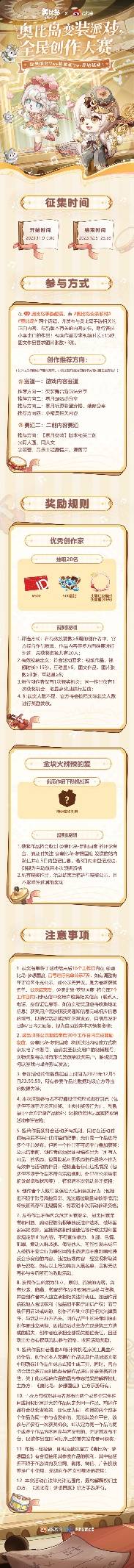 本次「奥比岛变装派对」全民创作大赛将在微博、小红书、抖音、B站四个平台同步开启,各平台具体参与规则请戳下方长图。