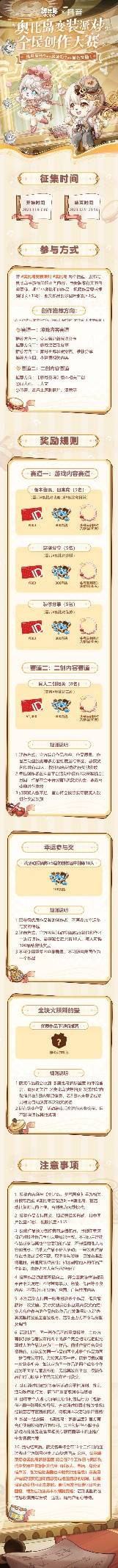 「奥比岛变装派对」全民创作大赛开启!参与创作,即有机会参与瓜分7w+奖金和7w+晶钻等丰厚福利!优质作品还有机会获得随机掉落的金块火辣辣奖励!