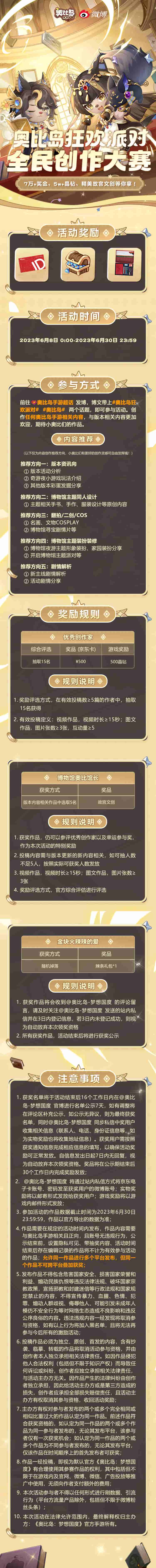 参与方式:在奥比岛手游超话,带#奥比岛狂欢派对# #奥比岛# 两个话题发布任何游戏相关且正向内容,版本相关更佳。