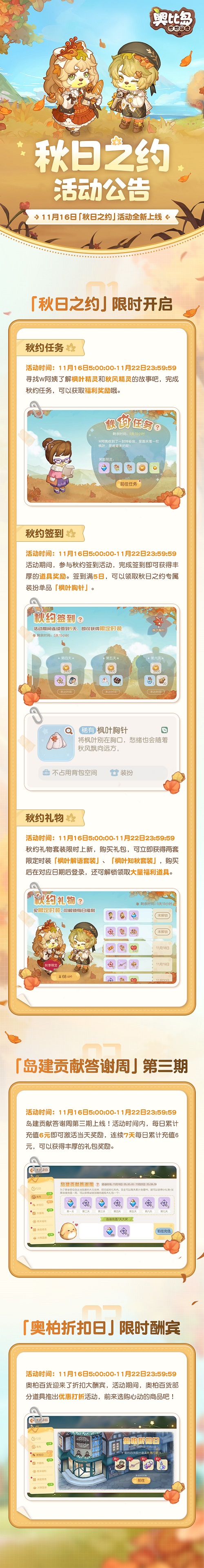 11月16日,奥比岛手游「秋日之约」活动全新开启,新时装、新任务即将上线!