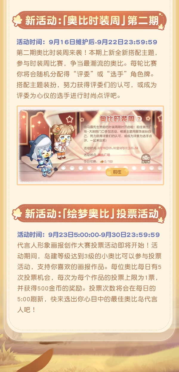 奥比岛手游1.3版本「快乐奥比」,将于9月16日欢乐开启!让我们相约「奥比快乐节」,一起迎丰收、打哈皮、开派对!