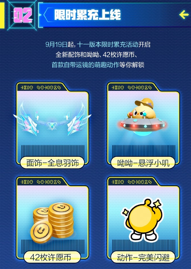 9月19日起,十一版本限时累充活动开启!全新配饰和呦呦、42枚许愿币、首款自带运镜的萌趣动作等你解锁!