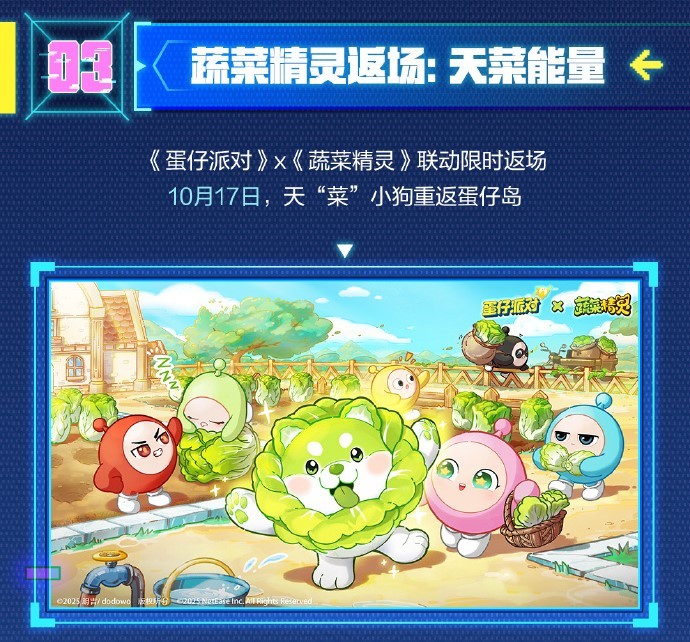 10月17日,《蔬菜精灵》联动返场,天“菜”小狗注入蛋仔能量!