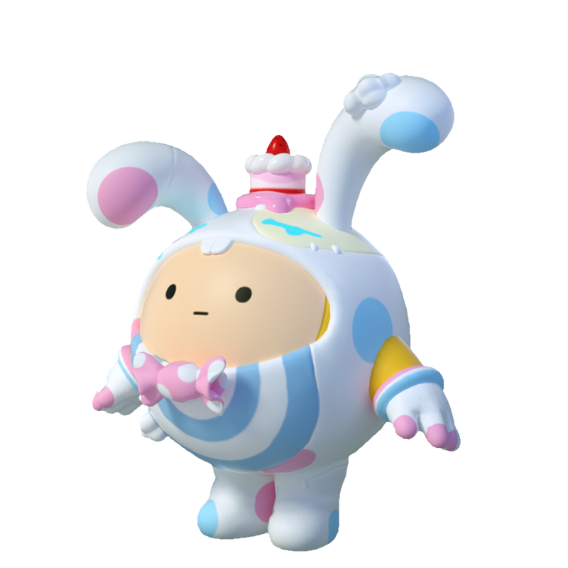 头顶一枚可爱蛋糕帽的[怀特精灵]软萌可爱,白色服装点缀着粉色蓝色圆形图案,元气值满分!她日常的工作就是在游乐园中出售美味的甜品,用甜蜜的美食击破蛋仔们的心理防线,让他们无负担地游乐玩耍。