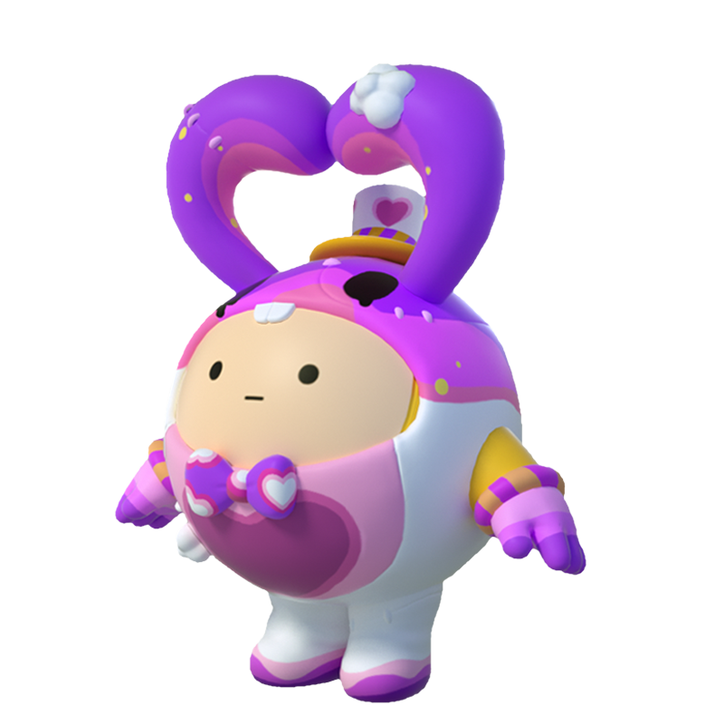 [哈特精灵]和其他两位不同,他的耳朵顶点相互触碰,加之从内到外由浅至深的配色,令他的耳朵看上去更像一颗跳动的心。胸前的蝴蝶结、头顶的礼帽以及身前的印花也都是心的形状。他用极致的关怀接待每一位来到游乐园的蛋仔,用如沐春风一般的温柔笑容留住想要离开乐园的蛋仔。
