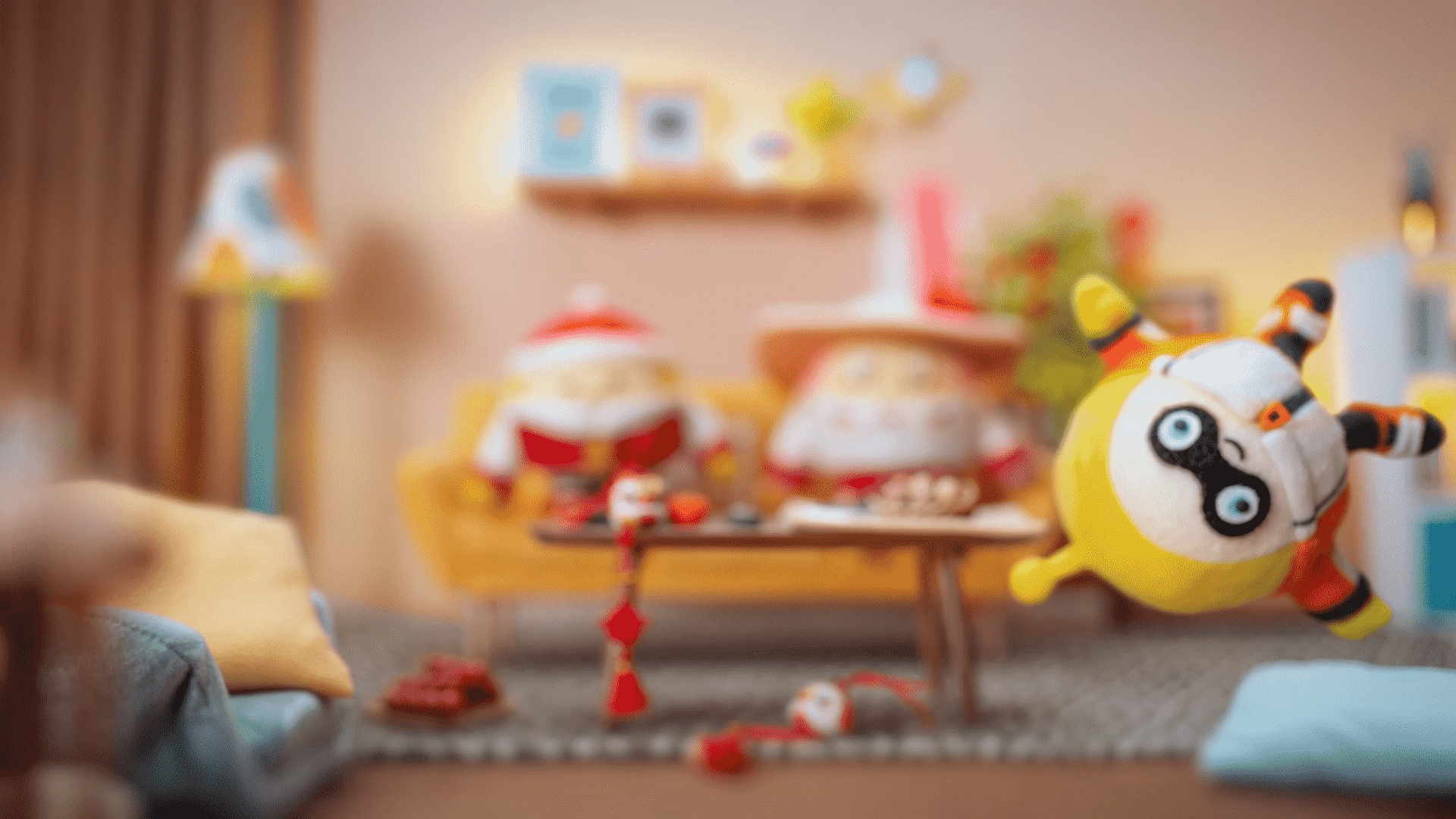 一声电视声吵醒了还在熟睡的蛋仔们,游戏里的各种角色在动画里活灵活现,碰撞感也是神还原,随着“老虎蛋”的哨声,蛋仔家里为了筹备除夕夜开始忙碌起来。温馨的场景、热闹的氛围、喜庆的蛋仔,沉浸于动画中,自己仿佛被一股欢乐的气流所托起。