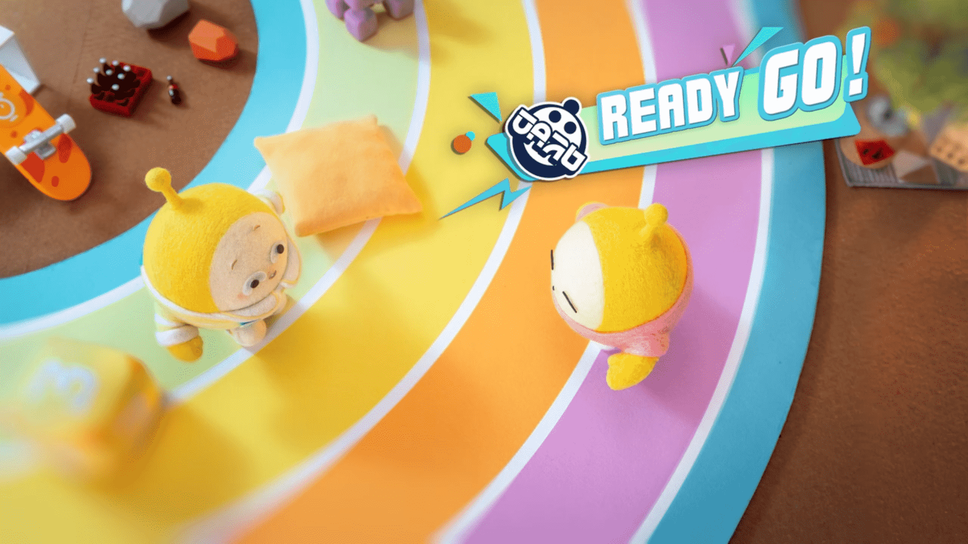 在“饺子争夺战”中,一只蛋仔被抓住失误,一个托举丢到彩虹跑道,顺势就开始了一场精彩绝伦的竞速赛。躲避、跳跃、滚动,和欢乐赛跑,和烦恼saybye。各位蛋仔新的一年也会翻越障碍,撞走所有不开心!