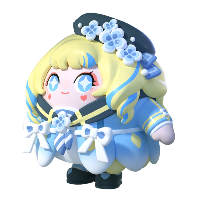 阳光般耀目的金发被真丝蝴蝶结妥帖系好,缀花贝雷帽斜戴,亮金色花体英文璀璨万分。双层花苞裙蓬松有型,外层用温柔的蓝白渐变设计凸显恬静气质,内衬则用浅淡的鹅黄增添可爱氛围。腰间辅以蝴蝶结作装饰点缀,与领间蓝樱配饰交相辉映,更显礼裙瑰丽十足。