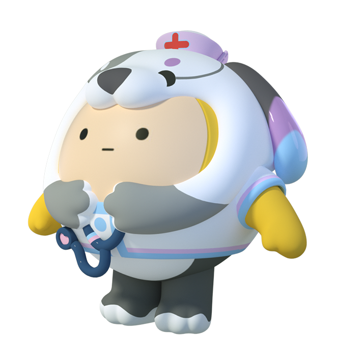 灰白配色稳重可靠,随身携带的听诊器更是让人安全感爆棚。温和“医护白白”为汪汪运动员的健康与梦想保驾护航。