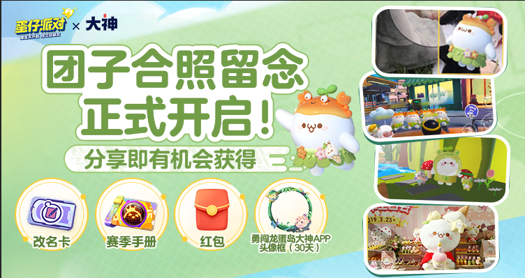 4月21日至4月30日,登录大神APP,进入团子心情便利店,完成活动任务即可获得糖果币,糖果币不仅可以用来抽取“高级手册”、“改名卡”、“大神头像框”等好礼,还可用来在便利店兑换相应奖励,更有机会直兑“颜团子外观”哦~不仅如此,邀请蛋搭子完成任务还可以共享积分,赶紧邀请你的蛋搭子一同参与活动吧~