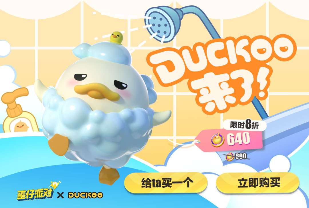沐浴时间到,萌鸭来报到!欢乐世界休闲竞技手游《蛋仔派对》× DUCKOO联动已经治愈开启,快来蛋仔岛邂逅新伙伴,一同享受沐浴的惬意时光吧!