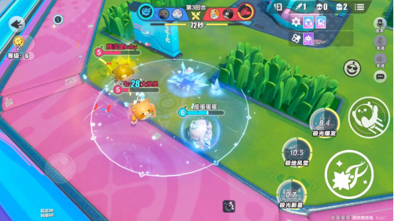 施展一技能“极光新星”,极光女神典伊在目标地点释放极光新星,对范围内敌人造成伤害和减速。