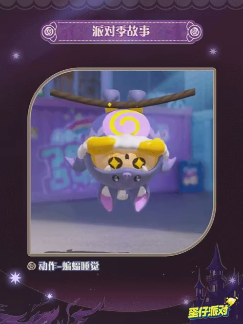 千年家族诅咒恩怨,看不屈的命运抗争者如何顽强突出预言的重围!《蛋仔派对》全新派对季剧情篇章重磅开启,体验剧情完成任务即可获得动作“蝙蝠睡觉”,领取派对季专属奖励!