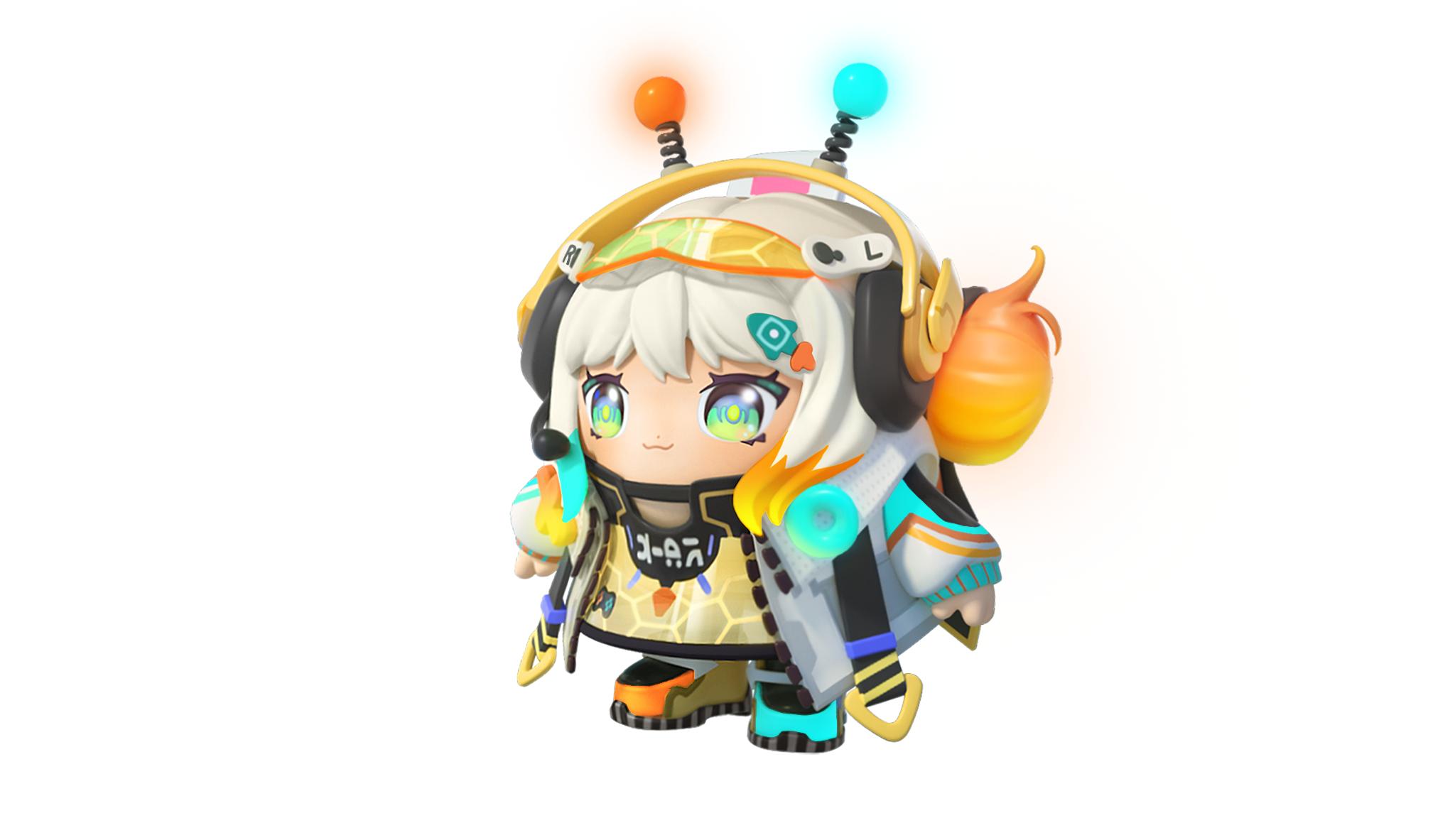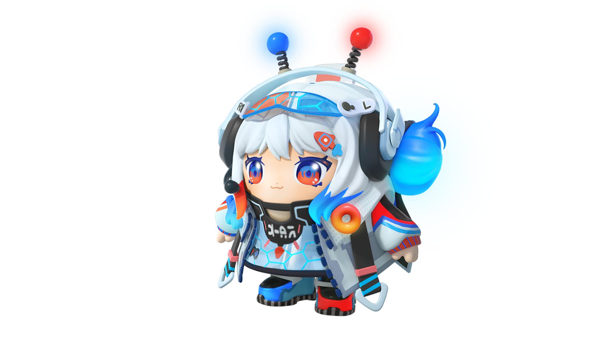 头戴式游戏耳机,酷似游戏手柄的头饰,小火箭发夹和爱心点赞小揪揪,这些元素无一不展示着艾莉的电竞直播属性;挑染的红蓝撞色双马尾,明亮的圆眼和微挑的嘴角,仿佛下一秒就能听到她活泼明媚的声音。