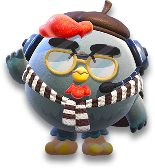 “内侯啊!我鸡导啦!”名导演“克里鸡托弗”混迹EGGYWOOD多年,始终没能改掉自带喜感的独特口音。画家帽与条纹披肩为他增添了艺术家的型男气质,耳麦展露出严谨专业的职业素养,滚圆的豆豆眼闪烁着智慧的光芒,火红的鸡冠更是片场的独特风景。只要场记板一打,雷厉风行的克里鸡托弗将展示出超越想象的才华,让极致的热爱化作精彩绝伦的光影艺术!