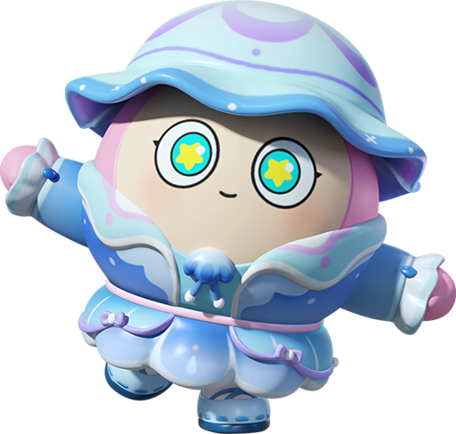 小圆帽透出梦幻的粉紫色,摇曳层迭的裙边与海浪一起跳舞。 换上“水母之舞套装”,化身水中自由精灵,做一场深海美梦。