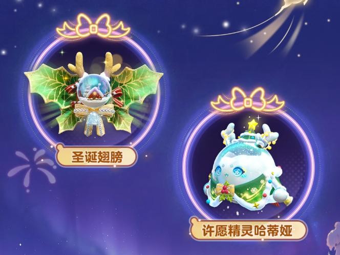 哈蒂娅将心爱的“圣诞翅膀”也带来了蛋仔岛。象征圣诞的槲寄生叶片化作羽翼,中间的水晶球内飘满雪花,其中一间小小的、透出暖光的红房子仿佛承载着圣诞夜里的万干心愿。