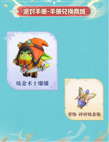 派对手册兑换商城梦幻焕新,典藏盲盒“炼金术士爆爆”和典藏配饰“砰砰炼金瓶”惊喜上架。绿色皮肤的地精少女为实验而疯狂,谁也不知道她炼金瓶中的药水几时爆炸。