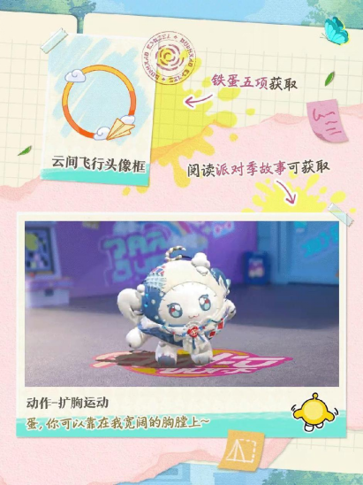 铁蛋五项奖励同步开启,可获得“云间飞行头像框”。