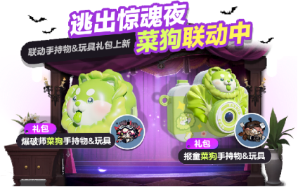 两款联动手持物也将上线惊魂夜珍品馆,购买<菜狗炸弹>&<菜狗相机>可同步解锁同款玩具。
