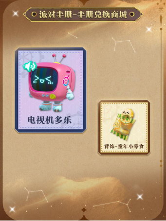 派对手册兑换商城梦幻焕新,典藏盲盒“电视机多乐”和典藏配饰“童年小零食”惊喜上架。可爱的粉色小电视正在播放,屏幕上的图案就是她内心最真实的吐露。