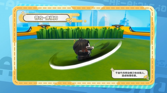 施展普攻时,千金竹月挥动横刀攻击敌人,造成物理伤害。