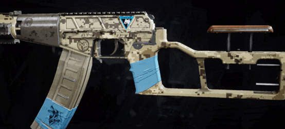 VSS射手步枪全新「白狼连队」主题涂装同步上线,枪身披覆白狼标志性的迷彩外观,握把处缠绕着蓝色战术胶带,枪身上的霜狼徽记更添威慑力,尽显精锐风范。