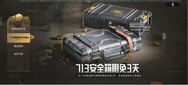 此外,先锋在7月13日起累计登录1天,即可免费领取3天的2x2防弹安全箱。活动截至7月18日。