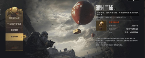 与此同时,派对气球强势登陆暗区,“戳破”气球就有机会获取高额奖励!派对气球将在农场地图以及前线要塞地图随机刷新。各位先锋打破气球后会有礼盒掉落,搜索后概率获得参考单价26888的限定收藏品庆典气球礼箱,一夜“暴富”的机会就在眼前!