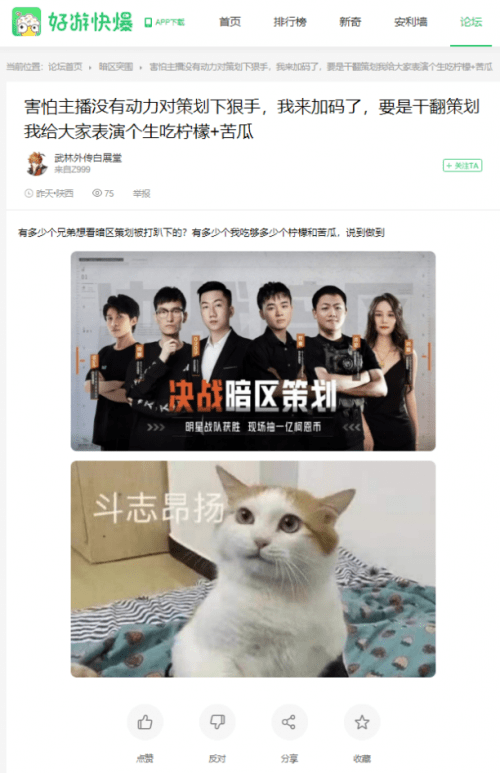 暗区的普通玩家们听闻此事后也瞬间嗨爆,在贴吧、Taptap、好游快爆等玩家社区纷纷站队发表自己的观点,表示想看策划翻车、期待主播暴揍策划。