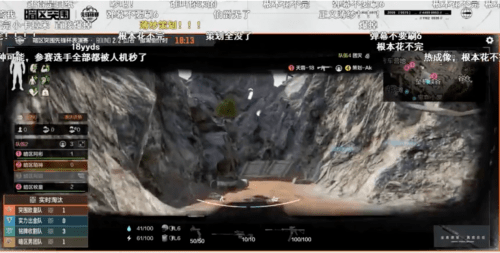 第二局开赛,策划队一改上局的战术,全队配置了热成像以便及时发现敌人,只是这次主播队没有再给他们机会。进入游戏没多久,铭牌收割队就在队长QUQU的带领下发起冲锋,不到两分钟便将策划队团灭。