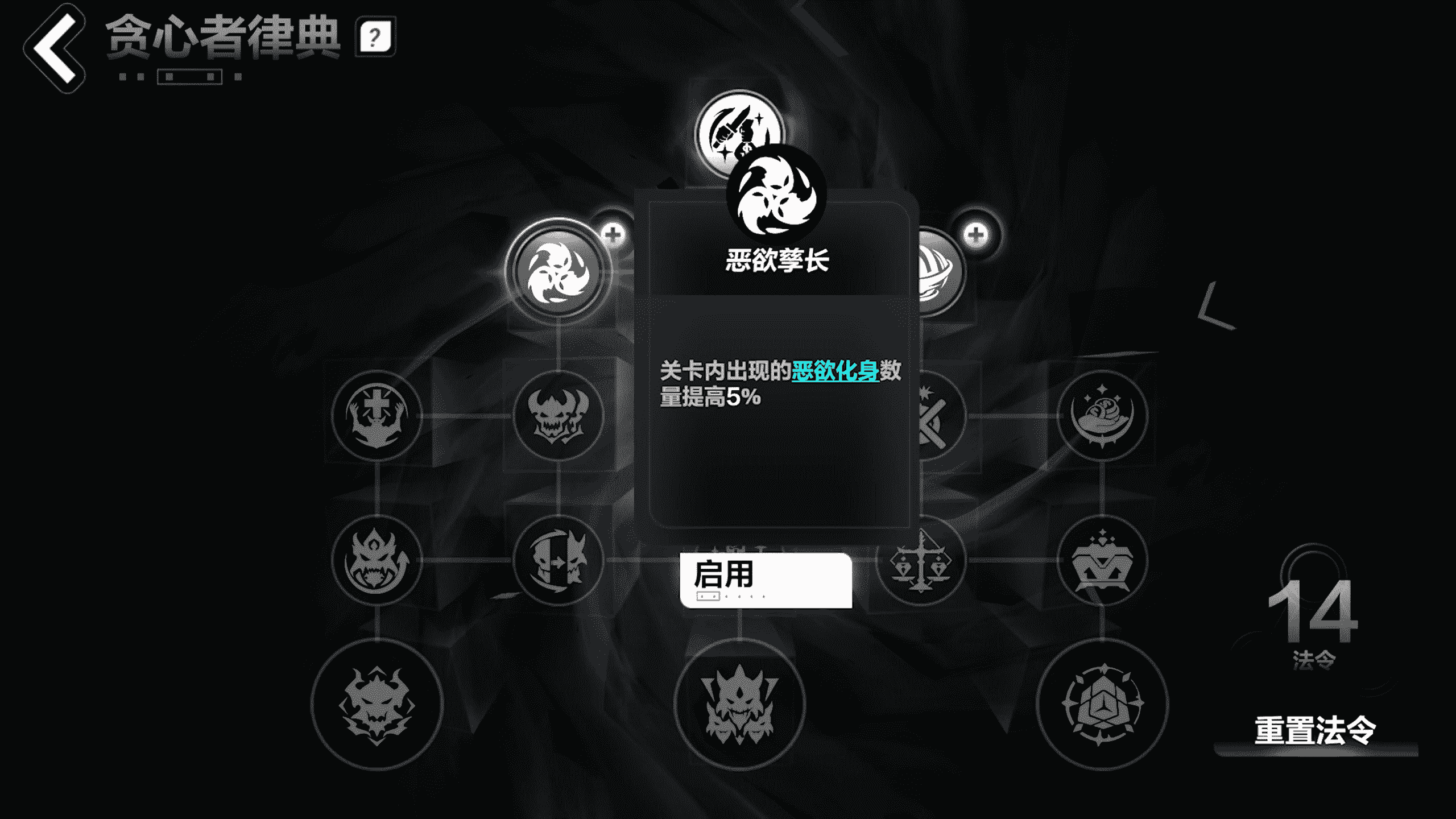 1.通过学习魔方天赋“贪心者律典”,可以增加抽奖次数,比如:增加关卡中“恶欲化身”的数量,或者降低抽取所需的“贪欲结晶”的消耗等,猎人可根据需要进行选择学习;