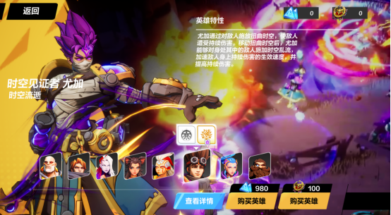 外号“时空2”,需要100英雄纹章或980原晶购买,门槛比较高,特色是对敌人施放扭曲虚空,使敌人遭受持续伤害。时空2的主要玩法便是利用扭曲时空的持续伤害来构筑自己的BD。相对时空1就更为冷门些了,毕竟本身作为付费英雄,大家会优先购买月女2、召唤2等强度高的付费英雄,时空2在强度上来说并没有优势,但数值加成也是足够的,后期毕业伤害也不迅速于其他职业,而装备相对便宜,更容易打造成型。
