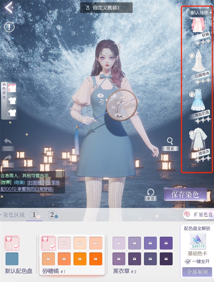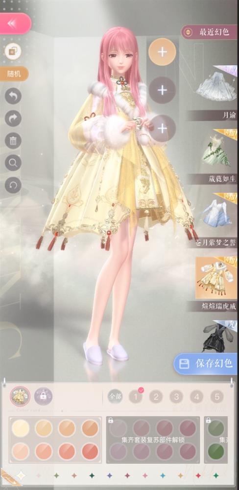 接下来是闪暖的染色门槛。获得可染色时装后,只有1个提取色色盘可用,无卡套装需在套装集齐后才能解锁10个色盘;带卡套装需在套装集齐,并对套装进行复苏后才能解锁10个色盘,全部色盘解锁后开启自定义调色。