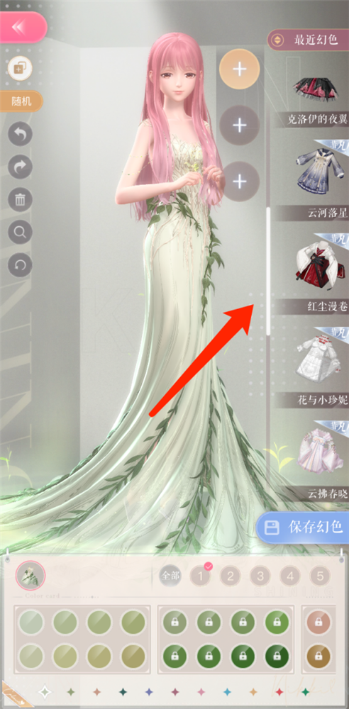 解锁后8个色盘后可升级解锁千幻色域,也就是无限色盘,玩家可以自由调节时装不同染色区域的色相、明度、饱和度,并且支持输入RGB六位色值,任意一种颜色都能调出来。值得一提的是,不论基础色盘还是千幻色域,所有等级时装和任意部件都支持。