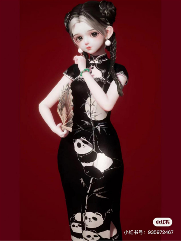 把熊猫绘制在旗袍上,萌萌的熊猫和修身的版型相碰撞,似乎有另一种反差美感。