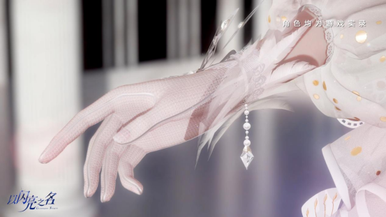 比如在视频的第5秒,女角色戴上了一副半透明的蕾丝手套。隔着薄薄的一层蕾丝,仍能窥见类似底下皮肤的粉润光泽,使得手套更显优雅轻盈。