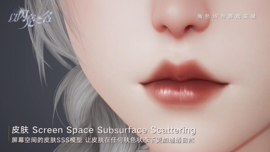 例如在视频中,有第一段展示皮肤细节的画面。玩家们可以看到女角色的皮肤在灯光照射下,呈现出一种接近半透明,更加光滑剔透的感觉,类似一种“清透发光肌”的既视感。