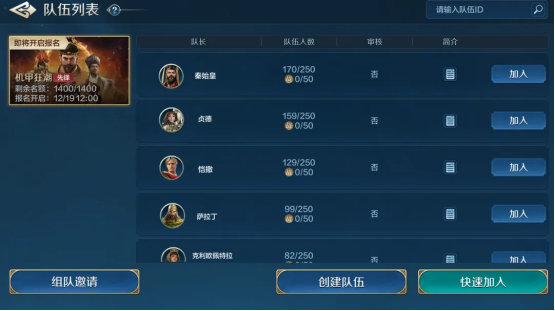 在备战区中,玩家可以直观地了解到下一纪元的报名情况,通过观察阵营报名信息分析下个纪元的阵营选择。与此同时,玩家还可以创建自己的队伍,通过吸纳和招募伙伴组成自己的“兄弟团”,在游戏过程中加深彼此的羁绊。