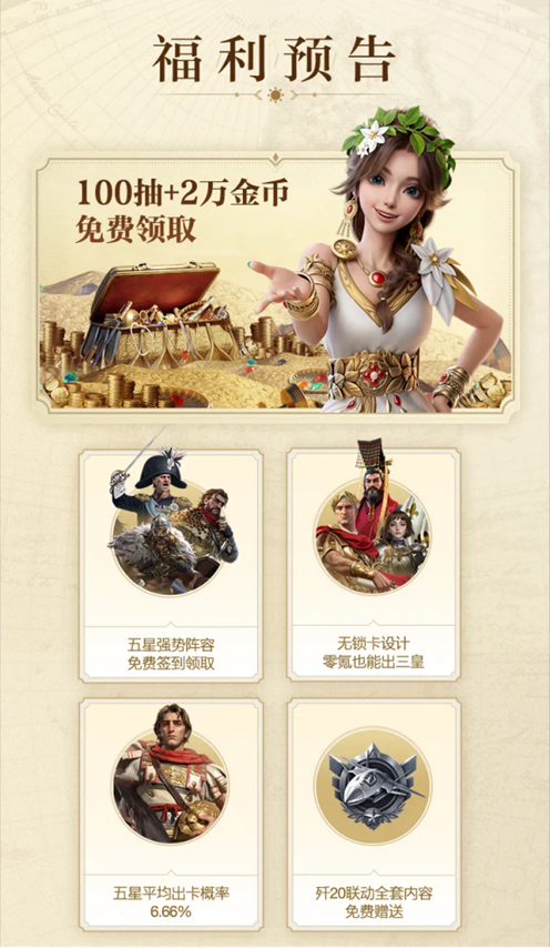 这也是为什么他们始终走不出SLG游戏内容固化+群体锁死的怪圈。这时候,“启元like”开创性强和玩法灵活的特性就凸显了出来。比如,在氪金这个老大难的问题上,《世界启元》给出了简单粗暴的解决方案,那就是把武将、金币、抽卡券直接塞到玩家手里,让SLG从起步开始就变得轻松。