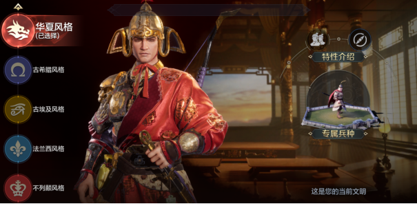 比如,一进到游戏的多文明选择,不同文明间城市形象、兵种特点均有差异,玩家从选择文明开始,一场有关个人发展的思维博弈就已经在悄然进行了。
