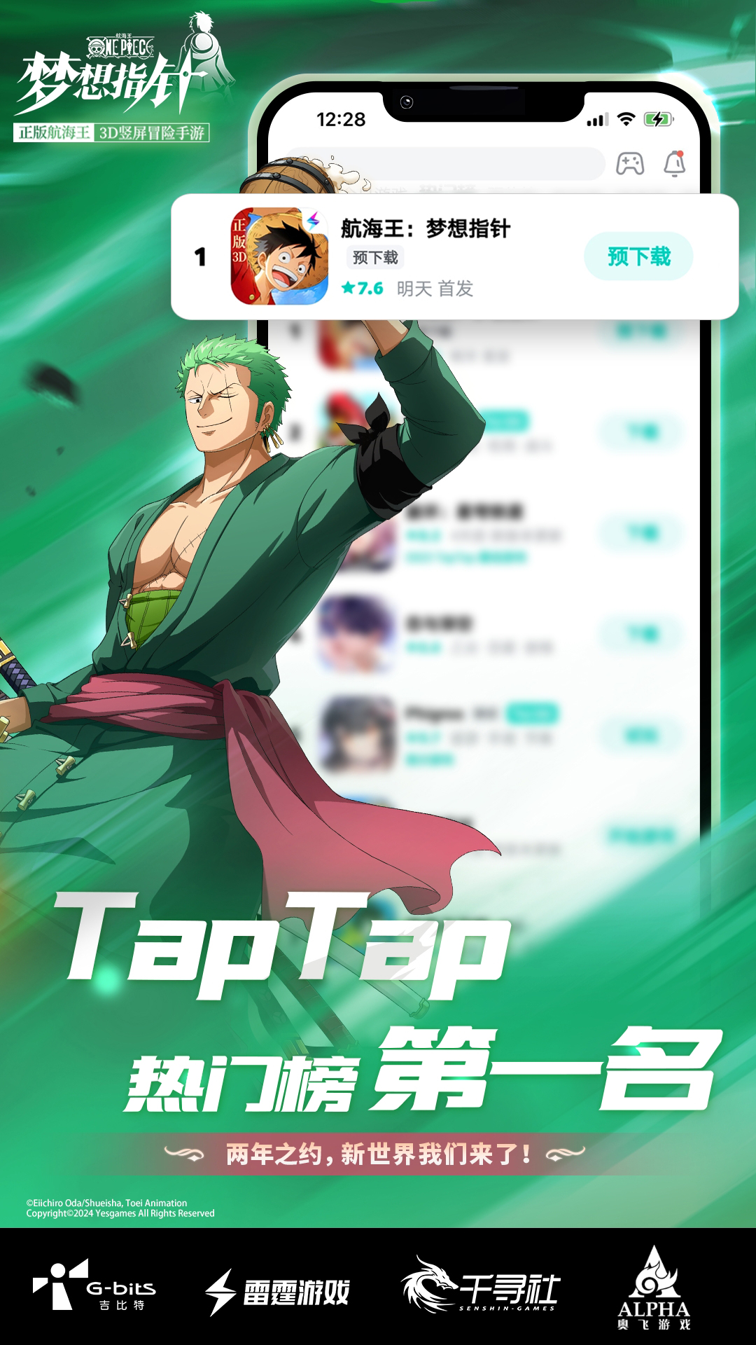 4月1日,手游《航海王:梦想指针》正式公测,上线仅2小时不到就登上了App Store免费榜Top1,与TapTap热门榜第一。