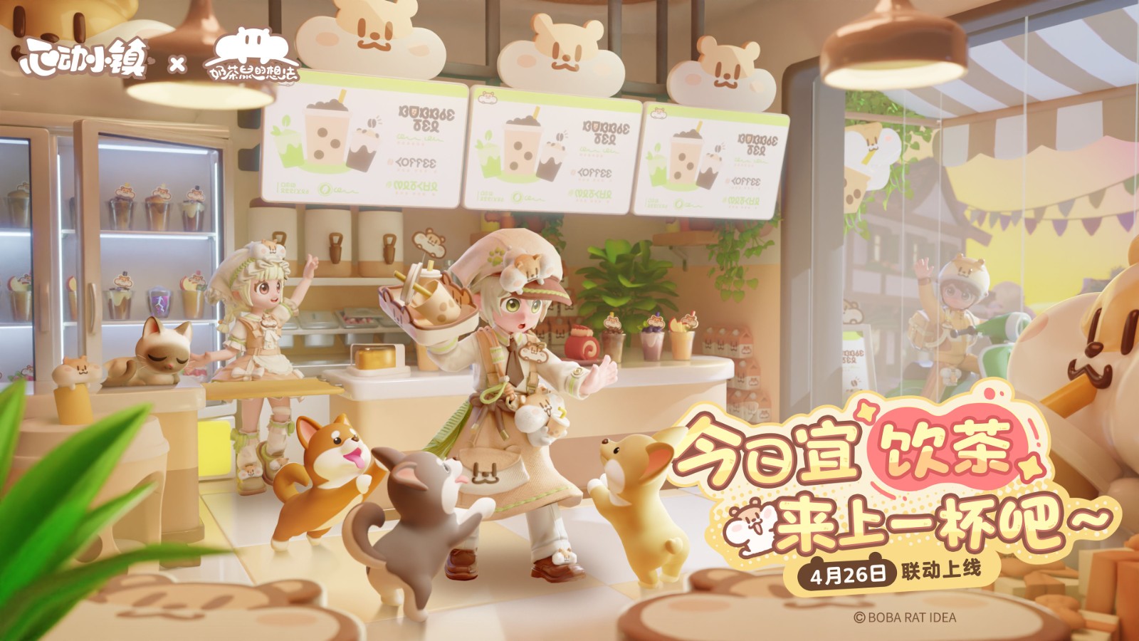 是的,心动小镇这次联动的正是《奶茶鼠的想法》!这只可爱又贪嘴的奶茶鼠将前往小镇打工,把它对美味奶茶的憧憬与开一家奶茶店的梦想带入心动小镇。于是全新“奶茶鼠”联动时装、家具和免费内容现已全面上线,发展家们也能在小镇开奶茶店、并通过全新的食谱奶茶还原现实饮品,在小镇春日的午后享受分享美味的惬意。