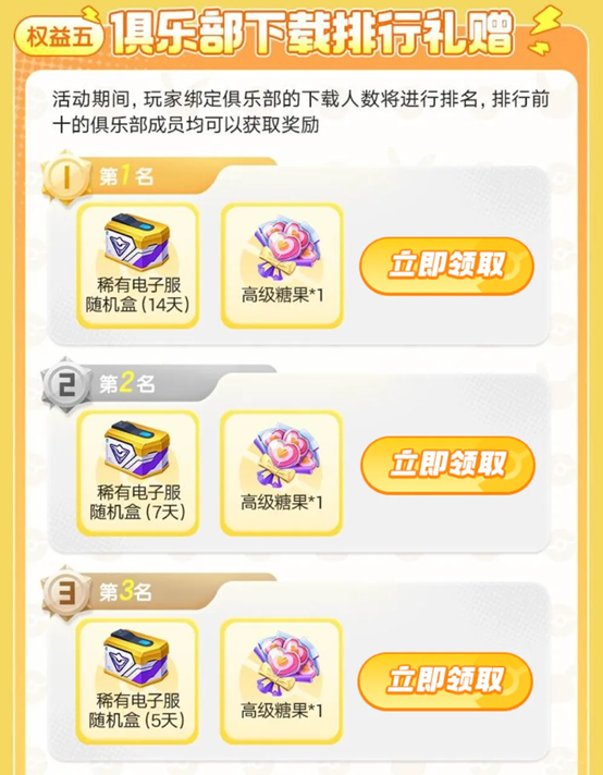 稀有电子服随机盒~这么丰厚的道具奖励,下载排行前三的俱乐部小伙伴人人都可领!数量管够,福利管炸,助力训练家在开服后成为亿奥斯岛最靓的仔!