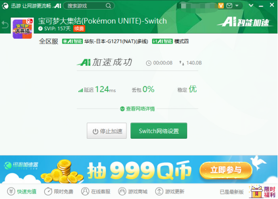不过Switch下载游戏对于网络有很高的要求,如果玩家们在裸连的情况下会出现无法进入游戏shop等问题,并且在预载、下载的时候也会遇到限速等问题,建议大家使用迅游加速器或者迅游主机APP加速后再进行预载、下载以及联机。迅游加速器及迅游主机APP流畅支持《宝可梦大集结》下载加速,加速之后可以有效提升游戏的下载速度。并且迅游加速器也稳定支持《宝可梦大集结》联机加速,军工级加速专线确保各位玩家的游戏数据直达服务器,助力各位玩家超低延迟,稳定联机。