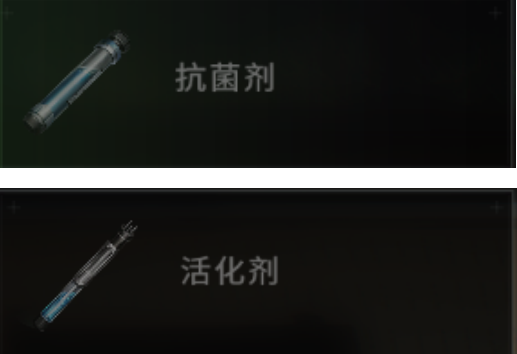 抗菌剂:经过精密调配的抗菌剂,作为活化剂最为主要的原料,能够迅速消灭周围的细菌和病原体,有效预防感染。在探索未知区域时,记得搜寻抗菌剂的踪迹,它们有时比子弹更重要。