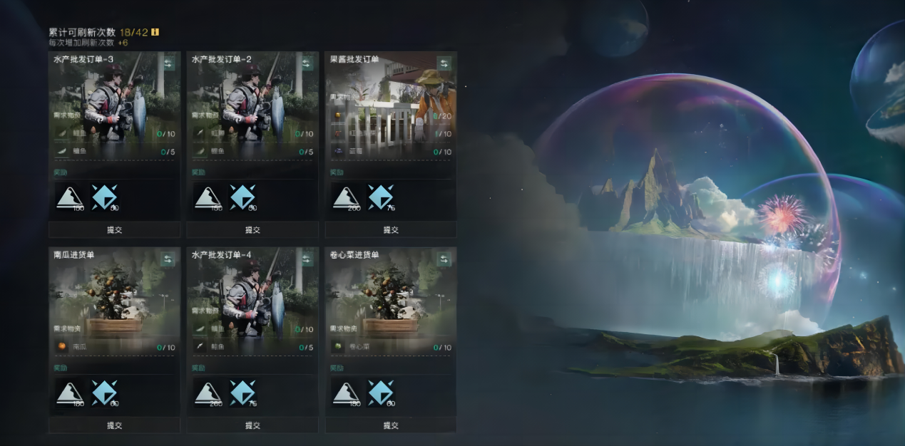 此外,永恒岛还新增了“永恒商店”,玩家可以用多余的物资换取永恒岛专属货币“永恒之沙”,也可以拿来完成商店发布的收购订单。