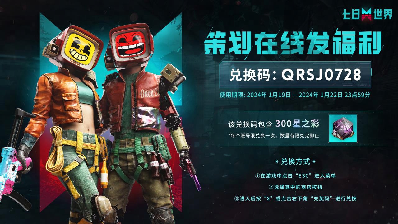 为了回馈广大《七日世界》玩家,策划也在节目里准备了丰厚的奖品福利,除了官方周边外,官方也准备了游戏抽奖货币“星之彩”。玩家根据直播间所给到的口号即可领取800星之彩。策划也在直播间中承诺获取星之彩永远不可能付费,否则将离开项目组。