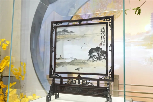 国庆期间,《如鸢》还将扬州的美景与非遗文化搬到了广州。在CICFxAGF动漫游戏盛典上,以栖灵塔景色为背景的《如鸢》展台展出了中国工艺美术大师吴晓平的水墨写意绣品《无垠归鸟》、江苏省工艺美术大师张秀芳的剪纸《田园梦境》、扬州漆器厂制作的螺钿漆扇等非遗艺术品。