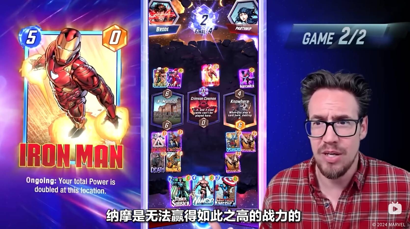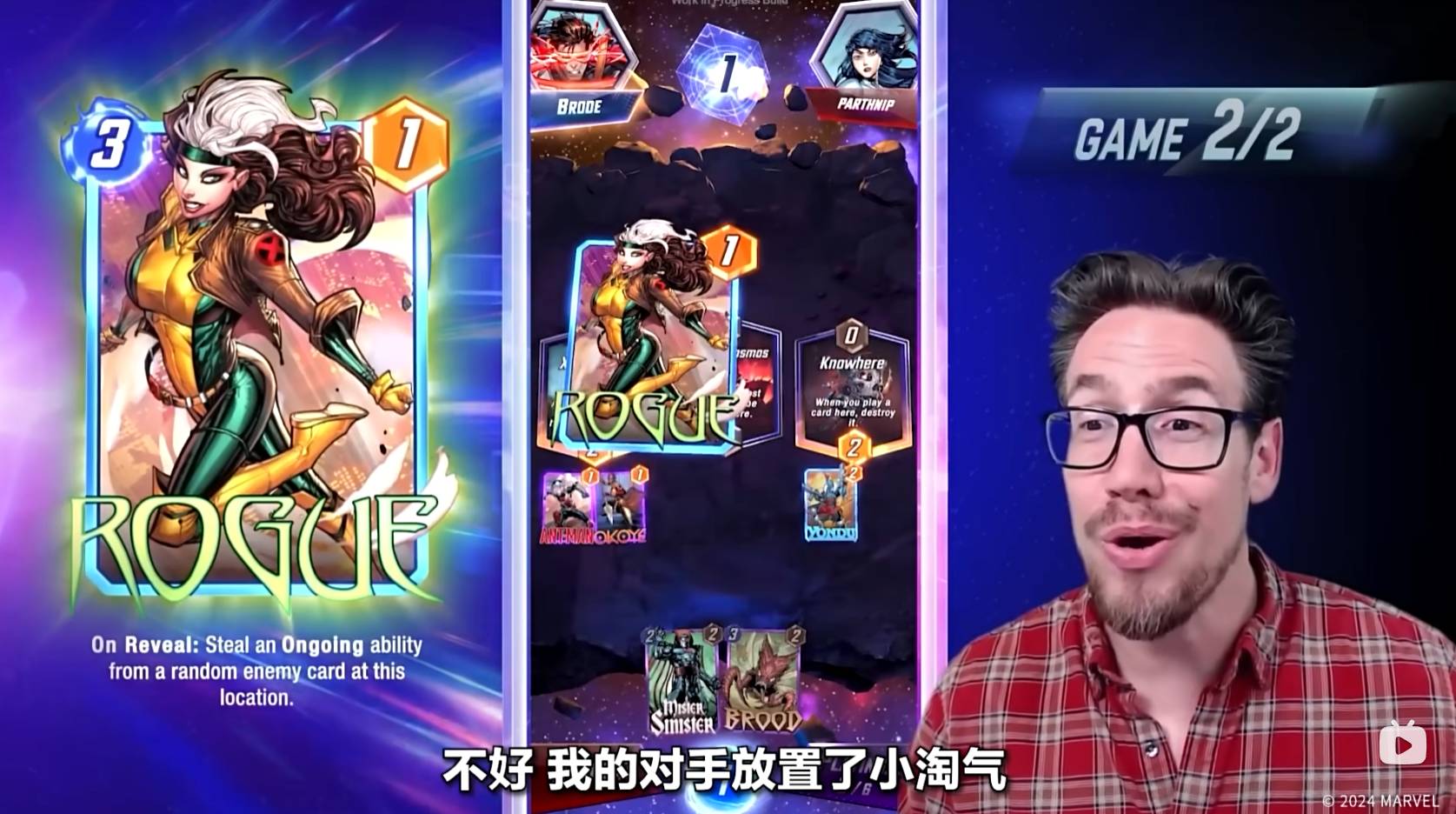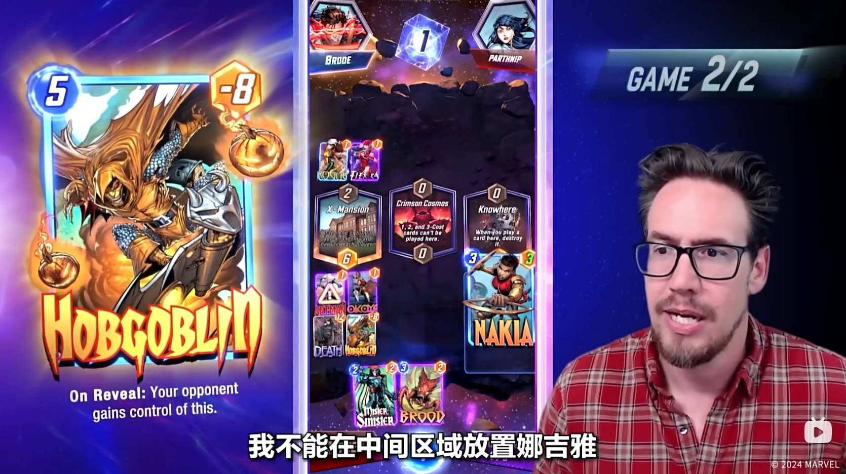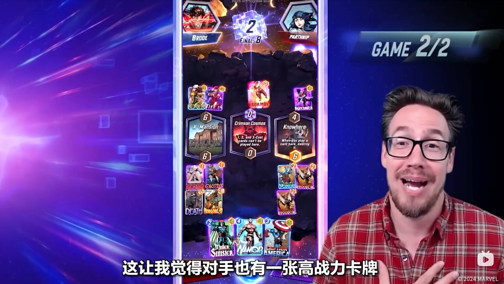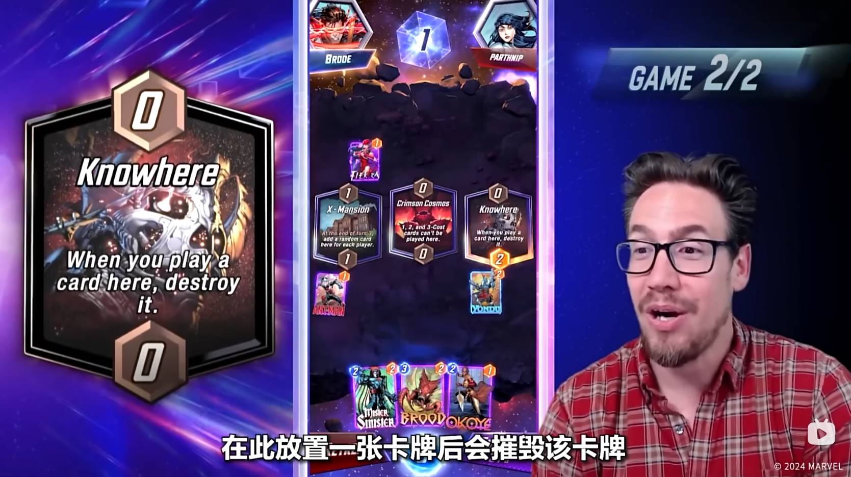 第六回合,Ben Brode只能将纳摩放置到太空王座上,纳摩在某个区域内,如果只有他一张牌,则会增加五点战力。到了狭路相逢的时刻,对手也非常可能在太空王座放置一张大战力的卡牌来取得胜利。值得一提的是,最后一回合魔方数将会翻倍,如果你觉得自己可能会失败,那就可以选择撤退。
